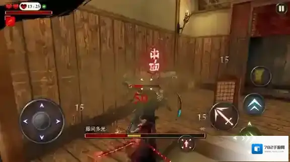 3、被boss打死后会出剧情,复活后会正式开始,屏幕左边控制角色移动,右边是闪避、攻击和跳跃。