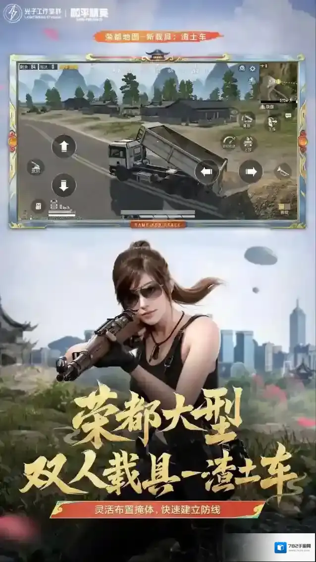 ① 渣土车:目前为止最大的载具,驾驶体验也和现实生活贴近,渣土车自带车斗土,可以通过卸土来即时制造掩体;