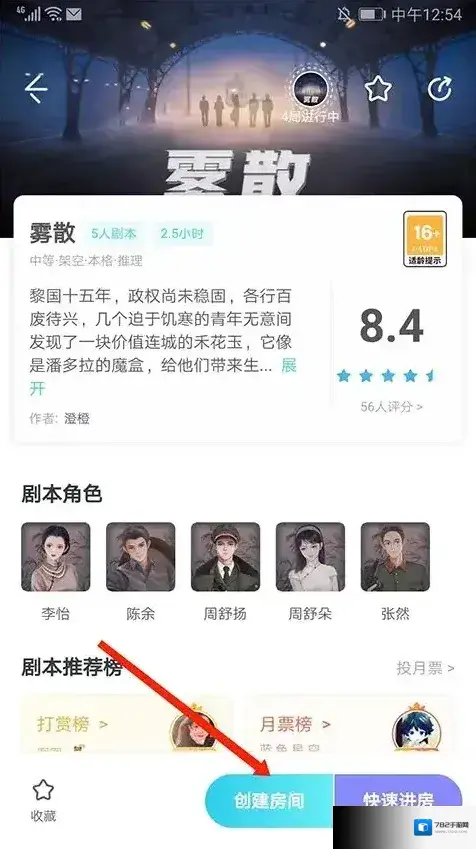 1、打开我是谜游戏,挑选好所需的剧本后,点击屏幕下方的创建房间选项。