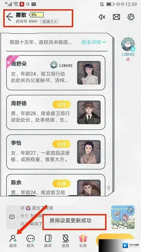 4. 返回剧本房间主界面,你会看到下方弹出提示房间设置更新成功。