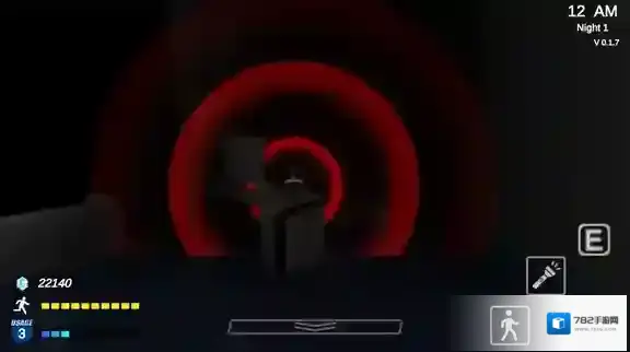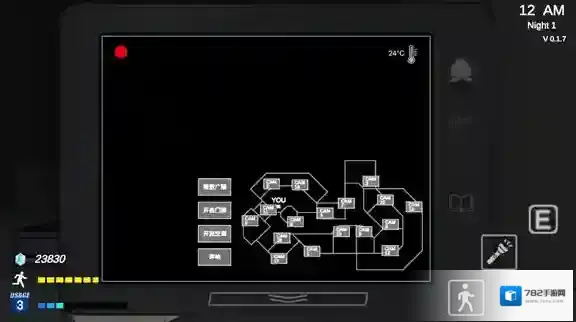 3、正式开始后左边控制角色移动,滑动屏幕可以控制转向,右边是互动、手电、奔跑按钮,点击向下的箭头可以打开平板查看不同的房间。