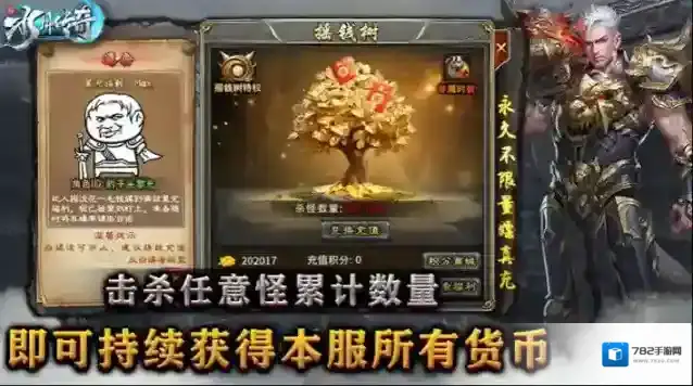 4、摇钱树:不需过多介绍,陪伴你从开局到封神的福利功能,每击杀100只任意怪即可兑换一次充值,永久不限量嫖真充和元宝。
