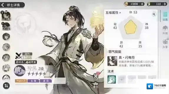 5、底部修士按钮进入角色界面,可进行升级、突破等养成操作。