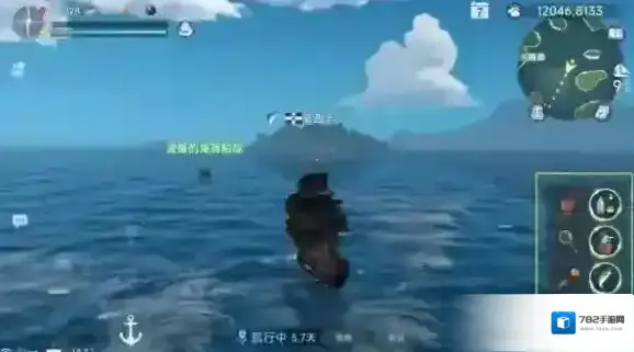 出海后点击左下角船舵中的船锚按钮即可启动船只,再次点击则可使船只停下,通过长按舵盘左右两侧,可以控制船只的行驶方向。