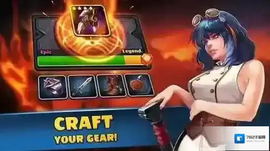 2、进入装备界面,点击箭头指向的装备打造(CRAFT-YOUR-GEAR!),消耗材料,将史诗(Epic)升为传说(Legend),强化英雄。