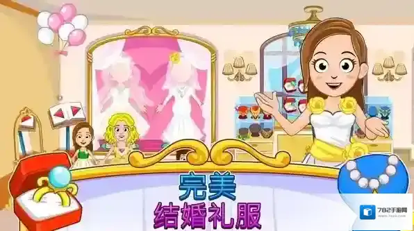 2、细节互动乐趣:在礼服店点击镜子查看穿搭效果,在蛋糕店滑动屏幕涂抹奶油,在典礼大厅点击风琴演奏音乐,让孩子感受真实婚礼的热闹氛围。