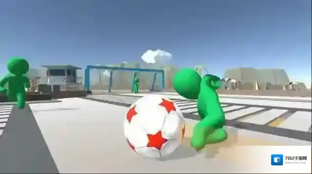 3、比赛中,预判绿色防守队员(2个绿人)动作,调整射门角度,绕开拦截,将红白球踢入蓝色球门得分。