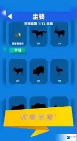 3、查看“收集坐骑”界面,通过捕获动物解锁新坐骑,更换坐骑继续冒险。