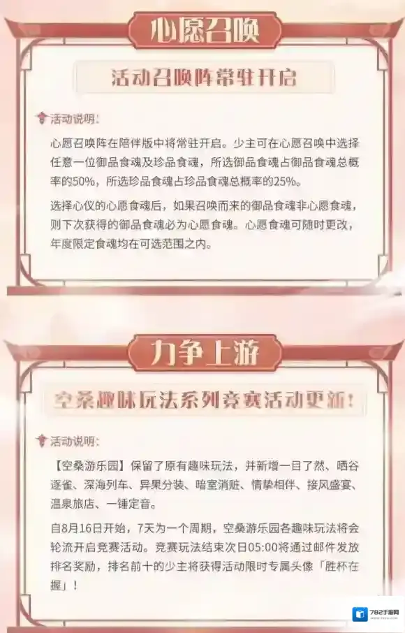 5、游戏保留了原版的趣味玩法空桑游乐园,在原有基础上进行了新增,召唤角色方面心愿召唤在陪伴版中也常驻开启。