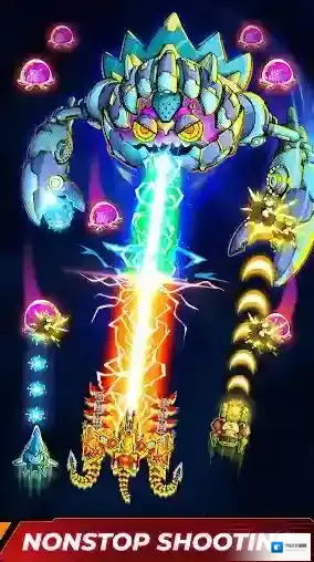 2、享受经典的街机玩法,在熟悉的太空射击游戏玩法基础上,融入全新元素,确保您每次都能获得全新刺激的体验。