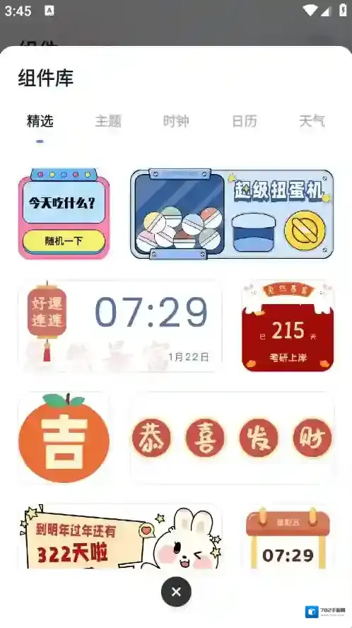 创意小组件,拥有丰富的手机桌面组件,日历、时钟以及天气等组件都有,让你的手机桌面看起来更加不一样,用户可以随时选择自己喜欢的小组件,打造专属不一样的手机桌面,享受桌面美化的乐趣,组件样式不断更新,满足用户的个性化需求。