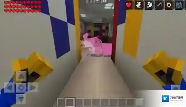 2、遇绿色长手怪物(类似波比角色),用左侧摇杆移动,避开攻击,寻找武器。
