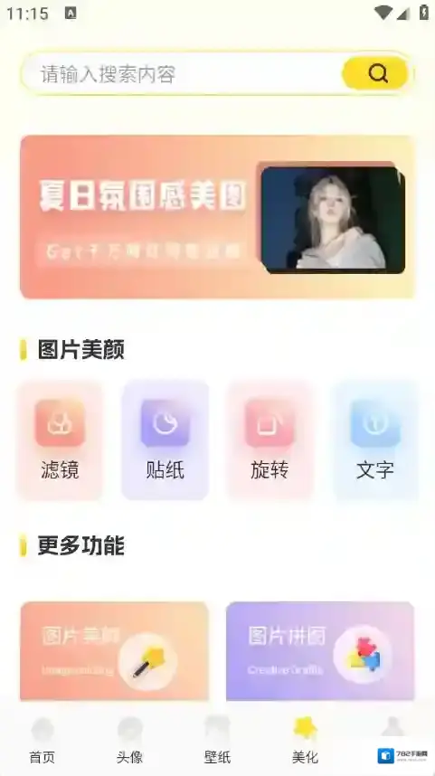 2、进入到首页之后可以看到壁纸、头像以及美化板块。