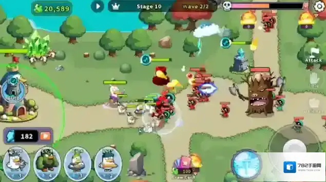 2、点击场景中的建造格子,可以在其中建造你的防御塔,并且还能进行升级。