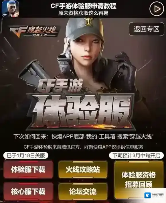 1、打开穿越火线手游官方网站,定位至体验服申请专区。
