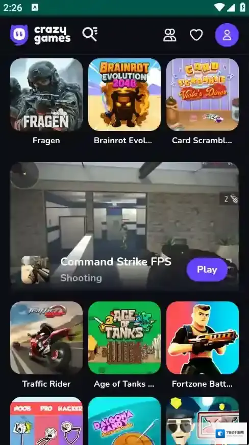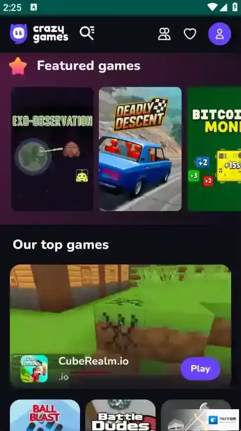 crazygames,免费畅玩各种游戏,涵盖了国内外优质的游戏资源,所有的游戏不需要单独下载,直接点开就可以畅玩,另外游戏都有详细的分类,帮助玩家可以快速上手,还可以与玩家分享心得,随时随地畅玩游戏。