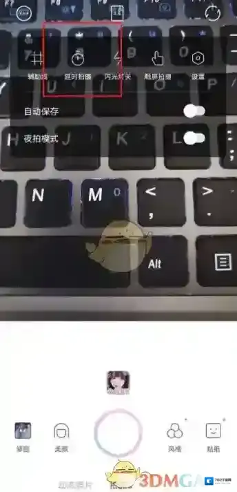 2、然后我们点击三点图标之后,即可点击延时拍摄。