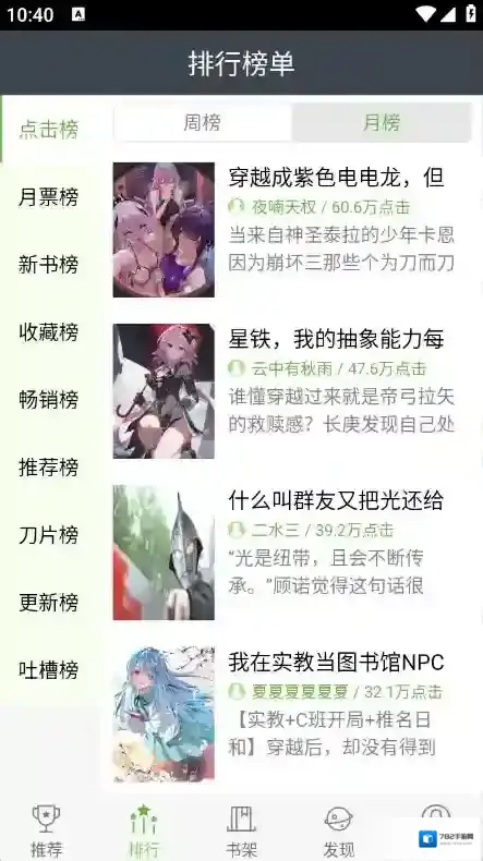 3、打造人气榜、月票榜、新书榜等多维度排行榜,从不同数据维度筛选优质作品。