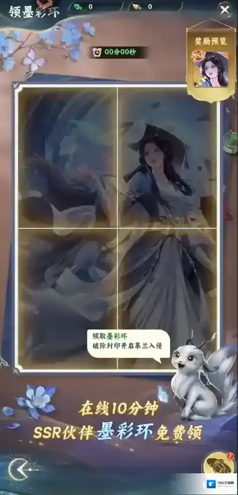 3、在线10分钟送大礼,SSR伙伴墨彩环免费领。