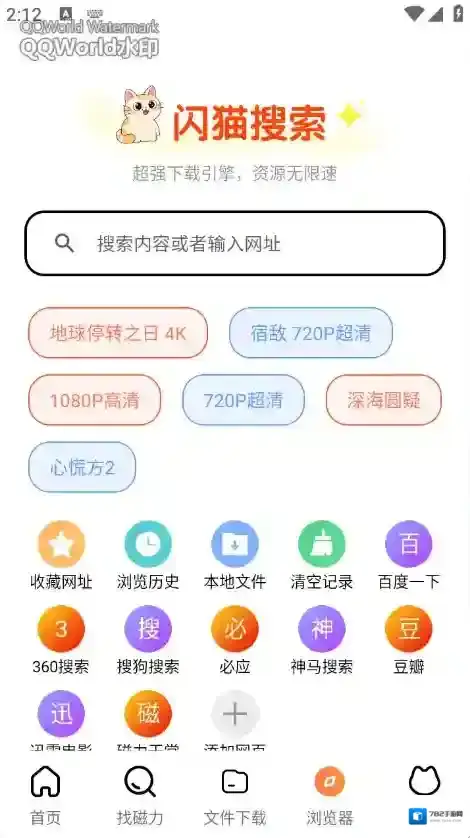 闪猫快下,免费下载各种资源,不管是下载视频、文件以及图片等都是刻意的,支持多种格式,还可以使用内置浏览器进行使用,下载速度快,软件中有强大的磁力搜索和下载引擎,快速下载需要的资源。