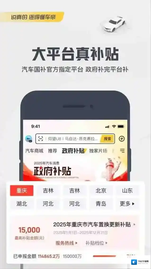 1、福建、重庆、河北、云南、北京顺义、北京石景山等多地政府补贴独家申领中,申领路径:懂车帝 – 政府补贴频道