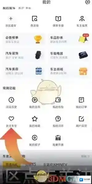 4、如果用户想要查看所有已关注的车型,那么点击我的,再上滑页面,最后在常用功能区点击关注车型,即可查看。