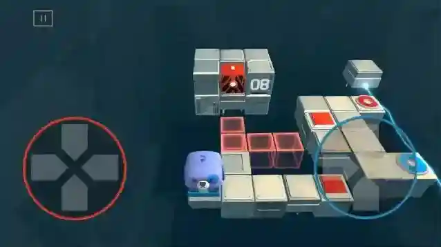 3、进入关卡后左边是控制红色机器人移动的摇杆,右边是控制蓝色机器人移动的摇杆。