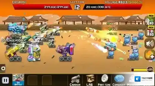 3、后期解锁巨型猫炮后,要放在敌人密集区域。注意敌人类型变化,飞行单位需要用对空炮台。