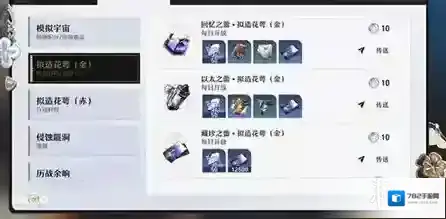 4、武器素材,用于升级武器,同样需要消耗体力刷拟造花萼来获取,此外,突破等级所需的怪物材料部分可以通过打怪掉落,但也有一部分需要刷拟造花萼。