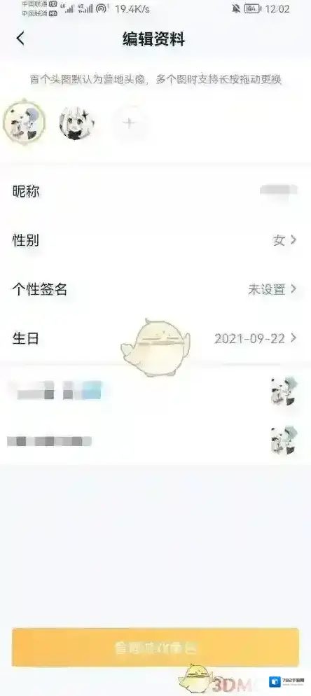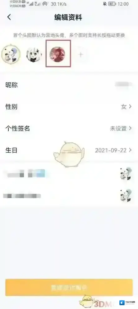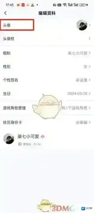 4、之后进入到编辑资料的页面中我们可以修改很多信息,直接点击头像;