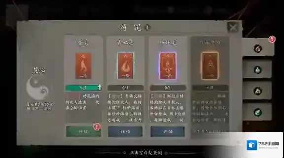 3、在关卡里右下角会自动生成各种属性的符咒让你使用,每次获得的符咒品质都是不同的。