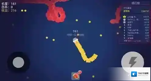 从局内操作层面来看,游戏中玩家一方面可以通过摇杆控制贪吃蛇的走位,吃到越多金币,贪吃蛇的体型就越大、长度就越长。