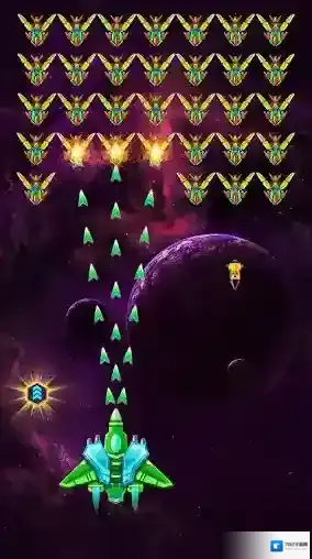 2、拖动屏幕即可移动战机,并自动的进行射击。