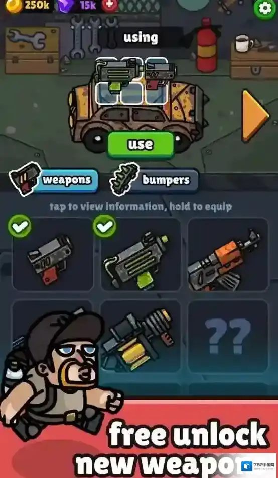 3、消耗金币可以升级你的车辆,可以提升武器威力或者增加血量。
