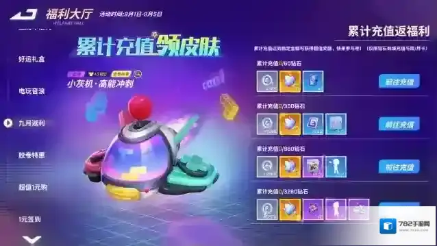 活动时间09月01日–09月05日电玩城的小灰机?看起来是手柄,又像是飞机…哎呀!总之不是靠电飞起来的!红色小球也许会接收到什么神秘的信号捏?小灰机·高能冲刺九月累充奖励包括道具卡皮肤小灰机·高能冲刺,微光之种,还有全新涂鸦,全新动作等你来领~冲冲冲!好啦!本期资讯就到此结束啦~我要去好好准备上学噜~拜拜少年们┏(^0^)┛