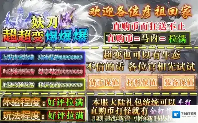 妖刀超超变爆爆爆,195神器高爆单职业版本,零氪到底,白嫖到终极!上线攻速、爆率、移速直接拉满,打怪就能赚取直购币,可以兑换礼包,时间证明一切!本服所有大陆礼包统统可以靠打获得,并且货币、材料和装备全部都很保值,支持玩家之间自由交易,绝对的生态大服!来这里天天领充值,免费轻松过关,白嫖即可到终极,绝对让你玩的爽爽爽!